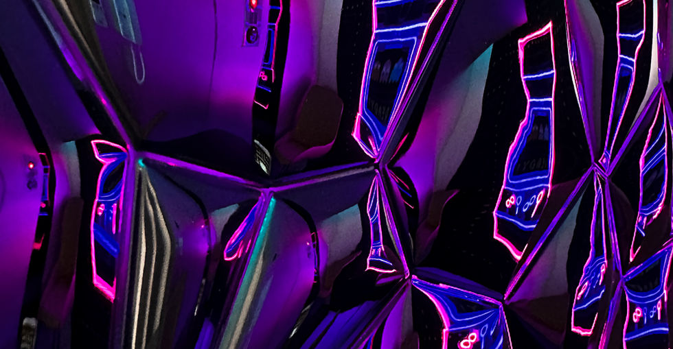 在霓虹燈的映照下,每個包廂宛如一顆顆五彩繽紛的糖果,色彩斑斕、活力四射!五彩的燈光在牆面舞動,彷彿將空間變成了夢幻舞台。讓人忘卻了時間,沉浸在美食與社交的雙重享受中。